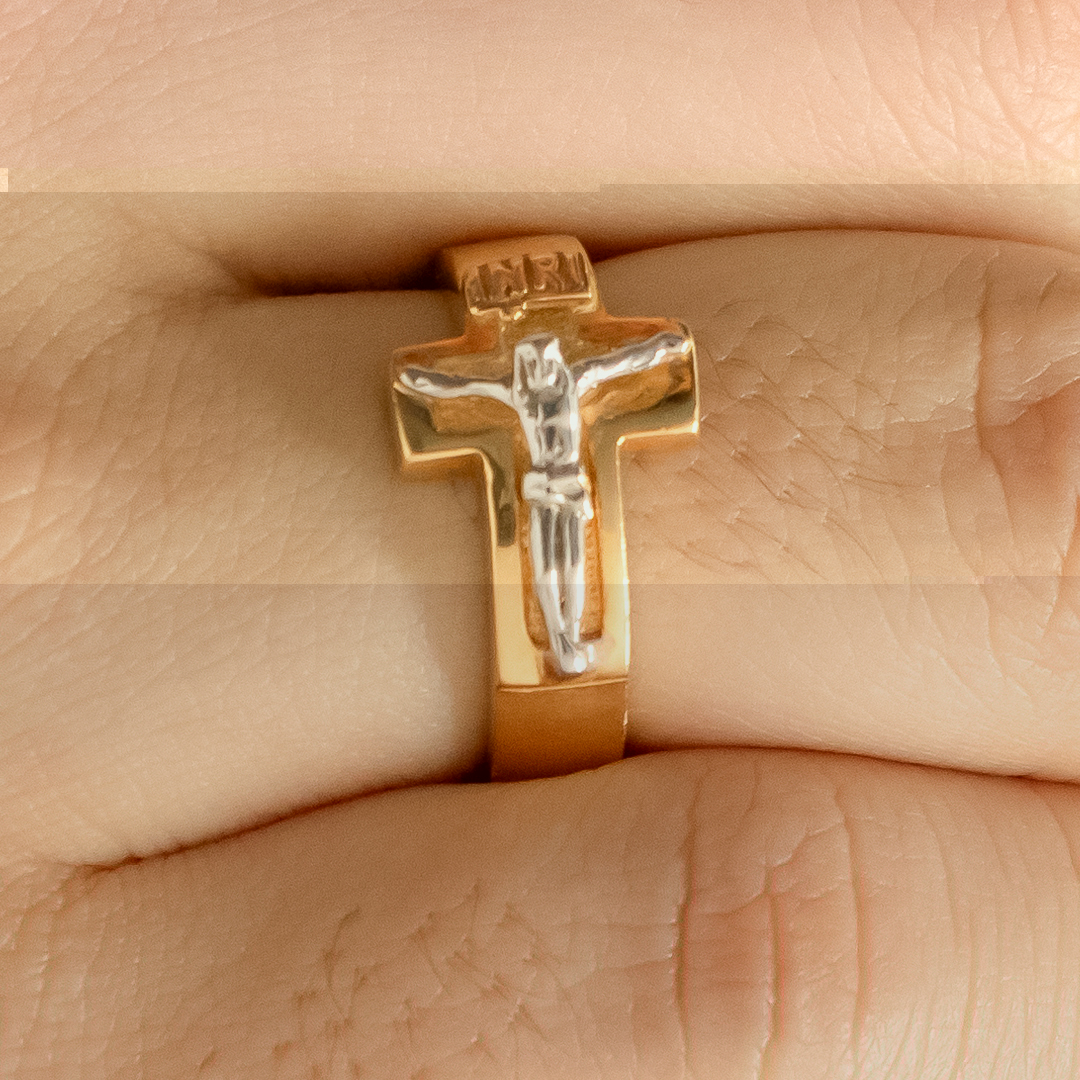 Anillo De Oro 18k Cristo Bicolor 5,8Gr