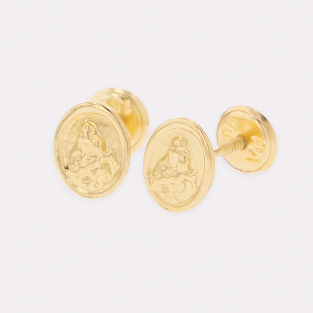 Estos delicados topos en oro de 18 quilates con diseño de virgen milagrosa combinan elegancia, calidad y simbolismo. Con un peso aproximado de 0.76 gramos y una altura de 6mm, son perfectos para uso diario o como un regalo con significado especial.