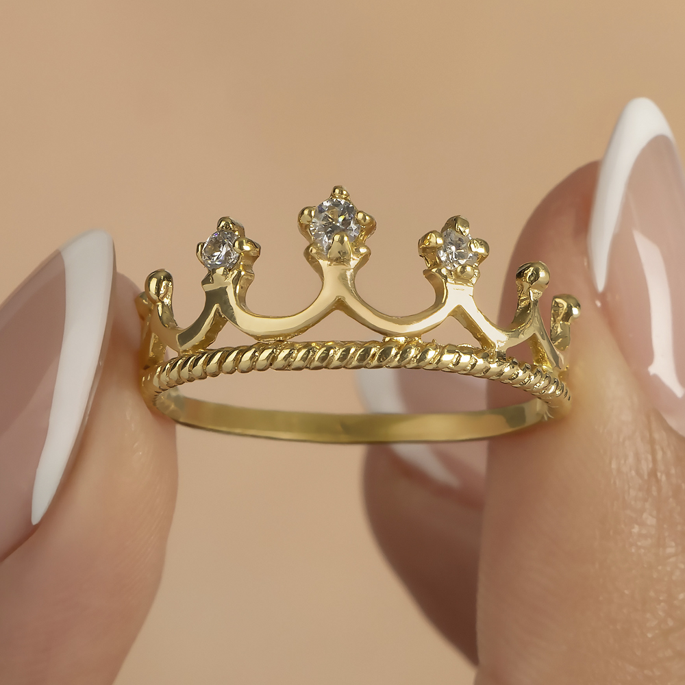 Anillo De Oro 18k Corona Con Piedras Blancas
