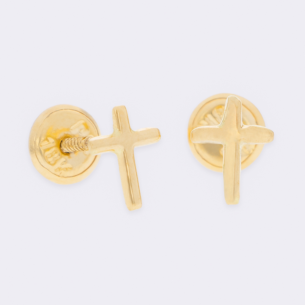 Estos delicados topos en oro de 18 quilates con diseño de cruz delgado mini combinan elegancia, calidad y simbolismo. Con un peso aproximado de 0.63 gramos y una altura de 5mm, son perfectos para uso diario o como un regalo con significado especial.