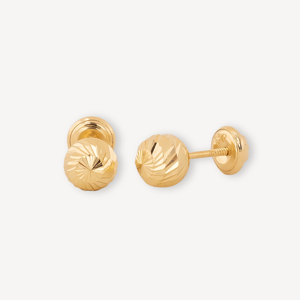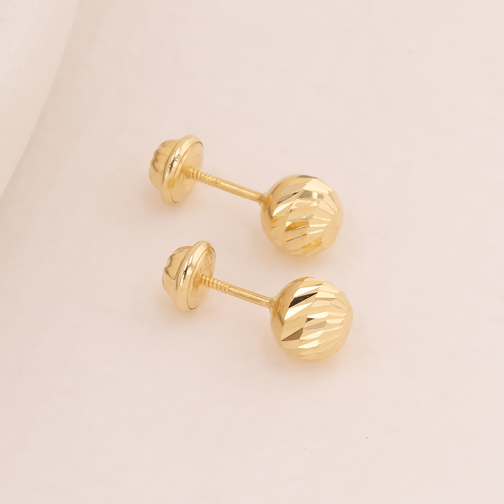 Clásicos topos de oro 18K tipo esfera diamantada, con acabado brillante que refleja la luz de forma sofisticada. Ideales para uso diario y combinación con cualquier estilo.