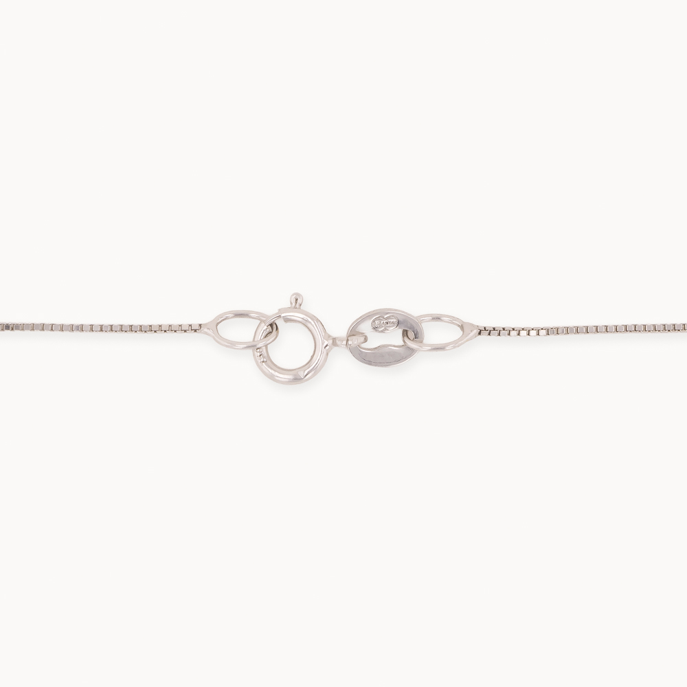 Exclusiva cadena de oro blanco 18K tipo veneciana, diseñada con eslabones cuadrados que crean una estructura uniforme, resistente y sofisticada. El oro blanco aporta un acabado moderno y elegante, ideal para quienes buscan una joya diferente con un brillo sutil y refinado.