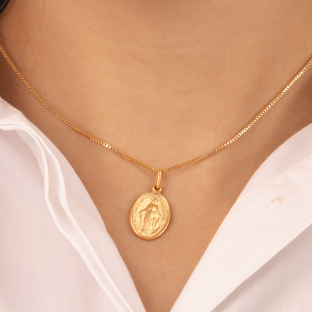 Dije de Oro 18K Virgen Milagrosa | Joya de Fe y Protección