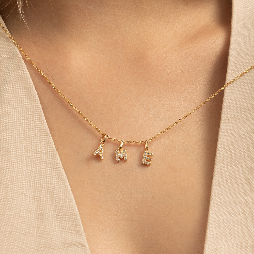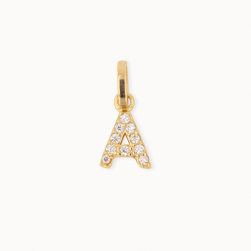 Dije de Oro 18K Letra A con Piedras Blancas | Joya Personalizada Elegante
