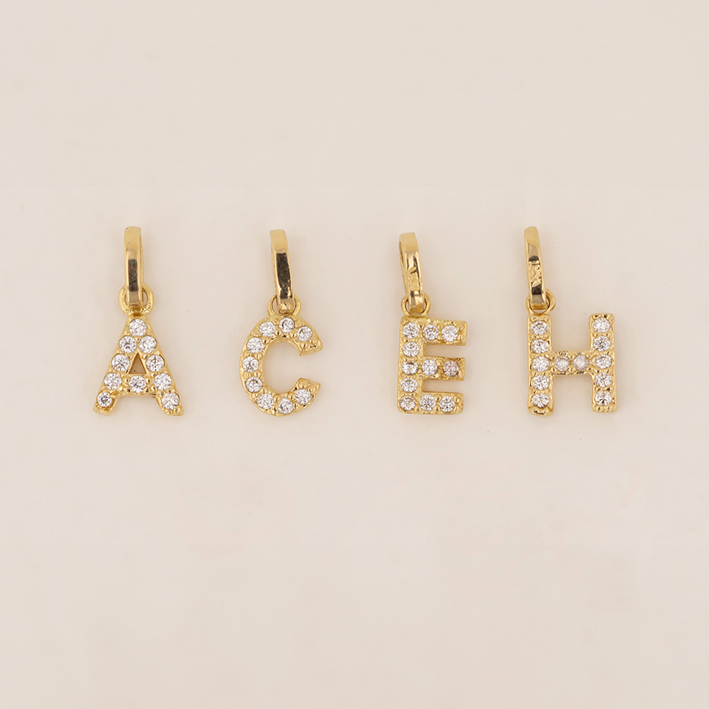 Elegante dije de oro 18K letra A con piedras blancas, una joya fina que combina estilo, brillo y significado personal. Elaborado en oro de alta calidad, su diseño incorpora delicadas piedras blancas que aportan un acabado luminoso y sofisticado. Ideal para uso diario o como regalo especial, este dije es perfecto para representar iniciales con elegancia.