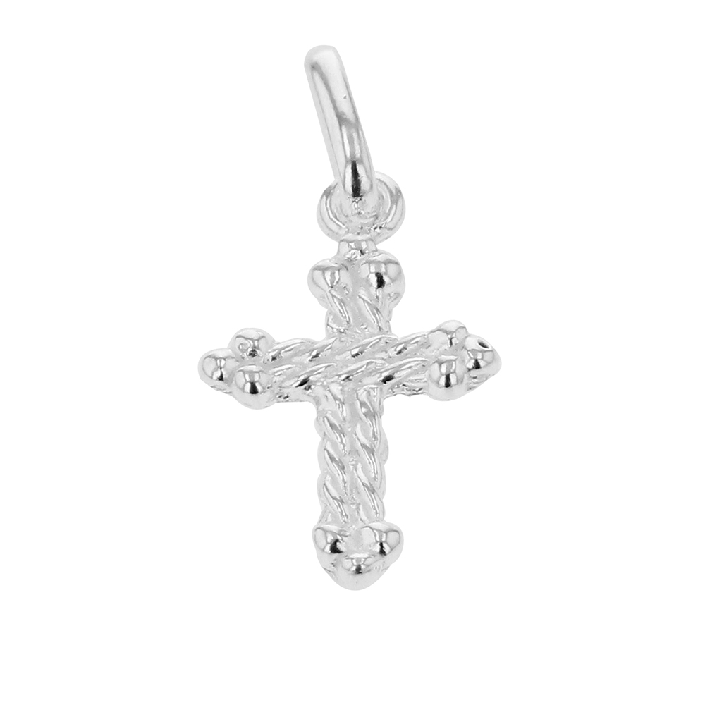 Dije De Plata Cruz Con Lineas En Bordes 0,8Gr