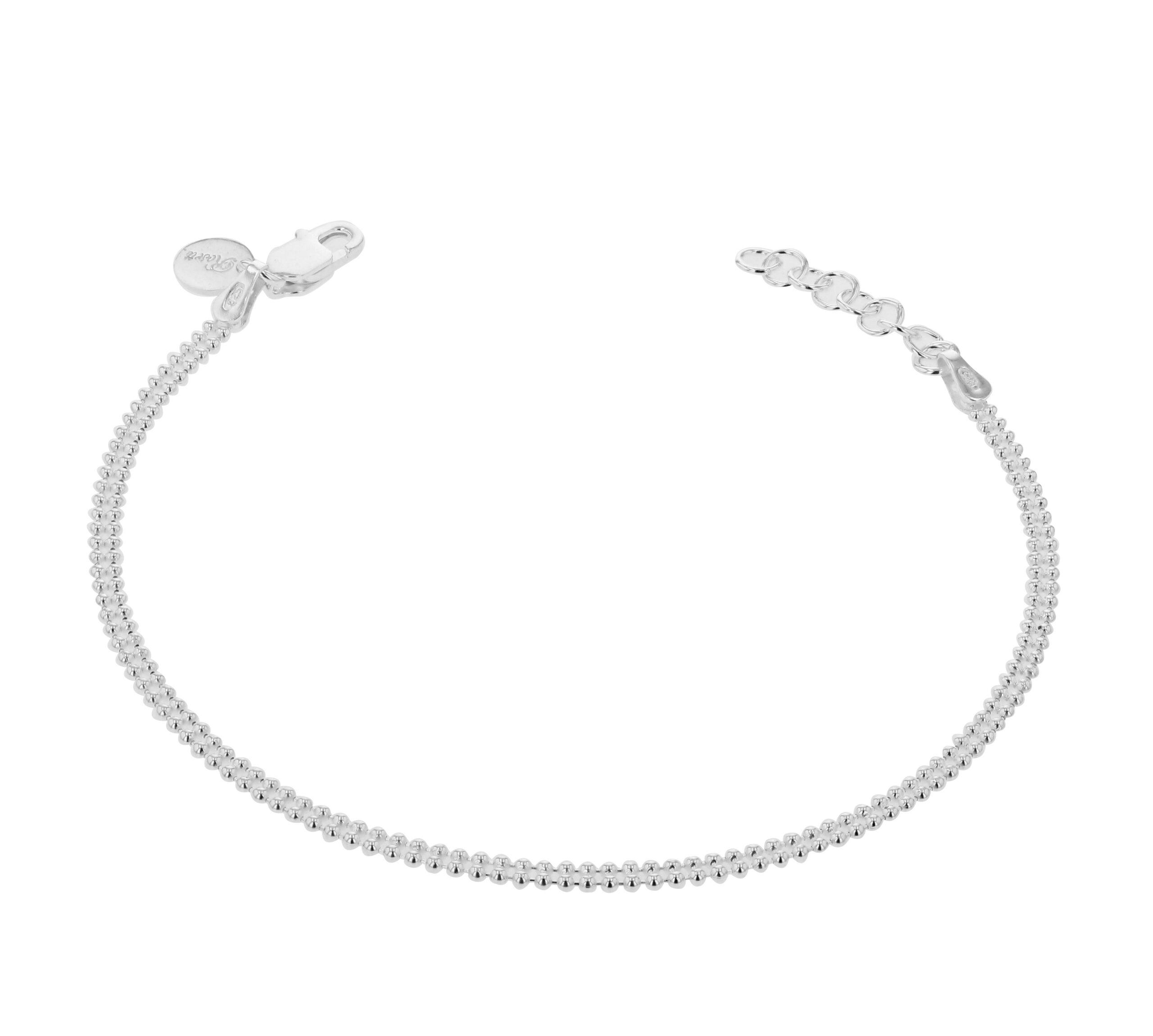Esta pulsera en plata 925 con diseño pellet doble 17cm mosqueton combina resistencia y estilo. Su peso aproximado de 2,2 gramos la hace ideal para el uso diario, sola o acompañada de otras pulseras.